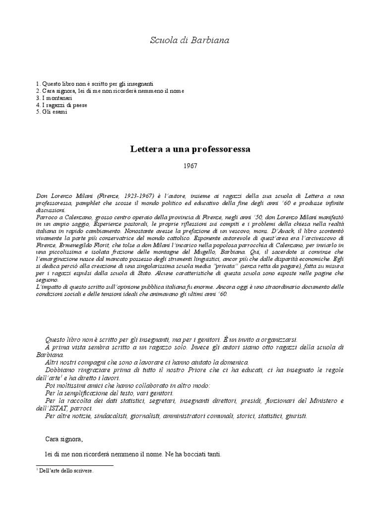 Lettera a una professoressa Download PDF e EPUB Con questa tecnica si possono ottenere Lettera a una professoressa Download PDF e EPUB file molto "leggeri", veloci da visualizzare anche su computer di vecchia generazione. Le informazioni, fino... Scarica l ebook online Lettera a una professoressa pdf Scarica l ebook online Lettera a una professoressa pdf Ho iniziato ad amare Lettera a una professoressa nel momento in cui l'ho letto. Lettera a una professoressa è così ben scritto che rimpiango... Download [PDF] Lettera A Una Professoressa 2 Don Milani ... Lettera A Una Professoressa 2 Don Milani Vive Ancora. Download Lettera A Una Professoressa 2 Don Milani Vive Ancora PDF/ePub or read online books in Mobi eBooks. Click Download or Read Online button to get Lettera A Una Professoressa 2 Don Milani Vive Ancora book now. This site is like a library, Use search box in the widget to get ebook that you want.