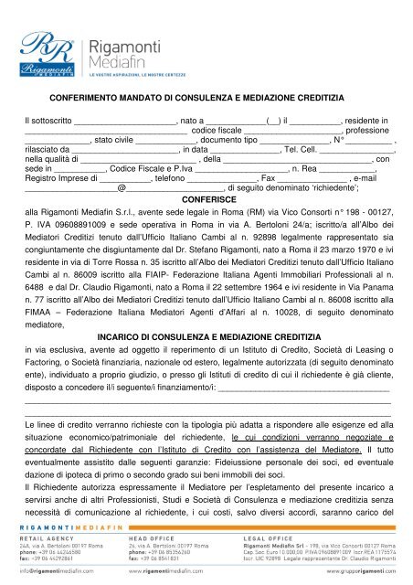 PDF INCARICO DI MEDIAZIONE PER LA VENDITA - Dimmidove L'AGENTE IMMOBILIARE è autorizzato ad avvalersi a proprie spese di banche dati e di agenti esterni a lla propria organizzazione, purchè iscritti nel ruolo Agenti d'Afferi in Mediazione di cui alla legge 39/89. 12) OBBLIGHI DELL'AGENTE IMMOBILIARE Con l'accettazione del presente incarico l'AGENTE IMMOBILIARE di obbliga a: