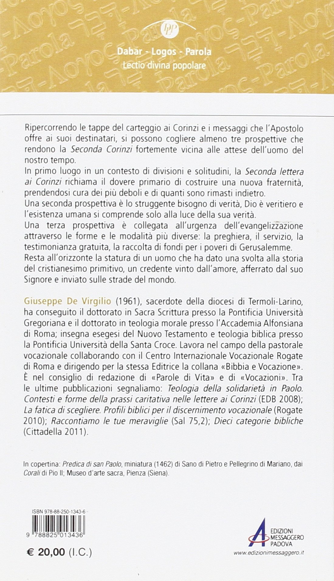 Lettera ai corinzi l'amore. Inno alla carità - Wikipedia Nella Prima lettera ai Corinzi, Paolo si rivolge ad una comunità cristiana (quella di Corinto) che cerca di definire meglio la sua identità, non solo in termini di dottrina: una delle questioni centrali affrontate nella lettera è infatti cosa significhi realmente essere "cristiano". Prima lettera ai Corinzi 13:4-8 NR94 - Bible Prima lettera ai Corinzi 13:4-8 L'amore è paziente, è benevolo; l'amore non invidia; l'amore non si vanta, non si gonfia, non si comporta in modo sconveniente, non cerca il proprio interesse, non s'inasprisce, non addebita il male, | Nuova Riveduta 1994 (NR94) | Download The Bible App Now Bible Plans Videos Get the app La Sacra Bibbia - Prima Lettera ai Corinzi - Corinzi 1 - Capitolo 2. [1] Anch'io, o fratelli, quando sono venuto tra voi, non mi sono presentato ad annunziarvi la testimonianza di Dio con sublimità di parola o di sapienza. [2] Io ritenni infatti di non sapere altro in mezzo a voi se non Gesù Cristo, e questi crocifisso. [3] Io venni in mezzo a voi in debolezza e con molto timore e ... Sacra Bibbia: NT | Lettere di san Paolo | Seconda lettera ai Corinzi Seconda lettera ai Corinzi 1. 1 Paolo, apostolo di Gesù Cristo per volontà di Dio, e il fratello Timòteo, alla chiesa di Dio che è in Corinto e a tutti i santi dell'intera Acaia: 2 grazia a voi e pace da Dio Padre nostro e dal Signore Gesù Cristo.. 3 Sia benedetto Dio, Padre del Signore nostro Gesù Cristo, Padre misericordioso e Dio di ogni consolazione, 4 il quale ci consola in ogni ...