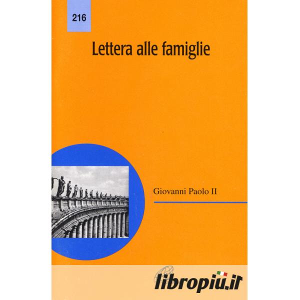 LETTERA ALLE FAMIGLIE” LETTERA ALLE FAMIGLIE. di Giovanni Paolo II. Sintesi. 1/5) La famiglia è la prima e la più importante "via" della missione e del ministero della Chiesa. Lettera alle famiglie del papa Giovanni Paolo II - Vari - Libri Compra Lettera alle famiglie del papa Giovanni Paolo II. SPEDIZIONE GRATUITA su ordini idonei.